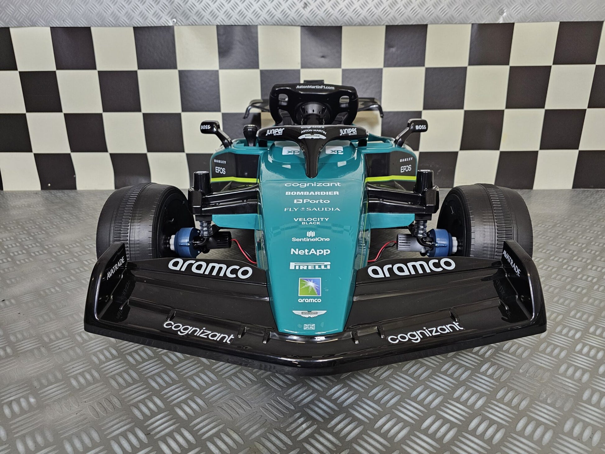 - Comfort en ontwerp: Comfortabel leren zitje en EVA-banden voor demping en grip; groen carroserie met een authentieke Aston Martin Formule 1 uitstraling.